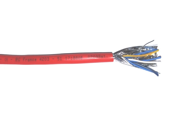 - Blindage : Un écran général est souvent présent, composé d’un ruban aluminium/polyester avec un drain de masse (fil de continuité) en cuivre étamé pour assurer une protection contre les parasites.